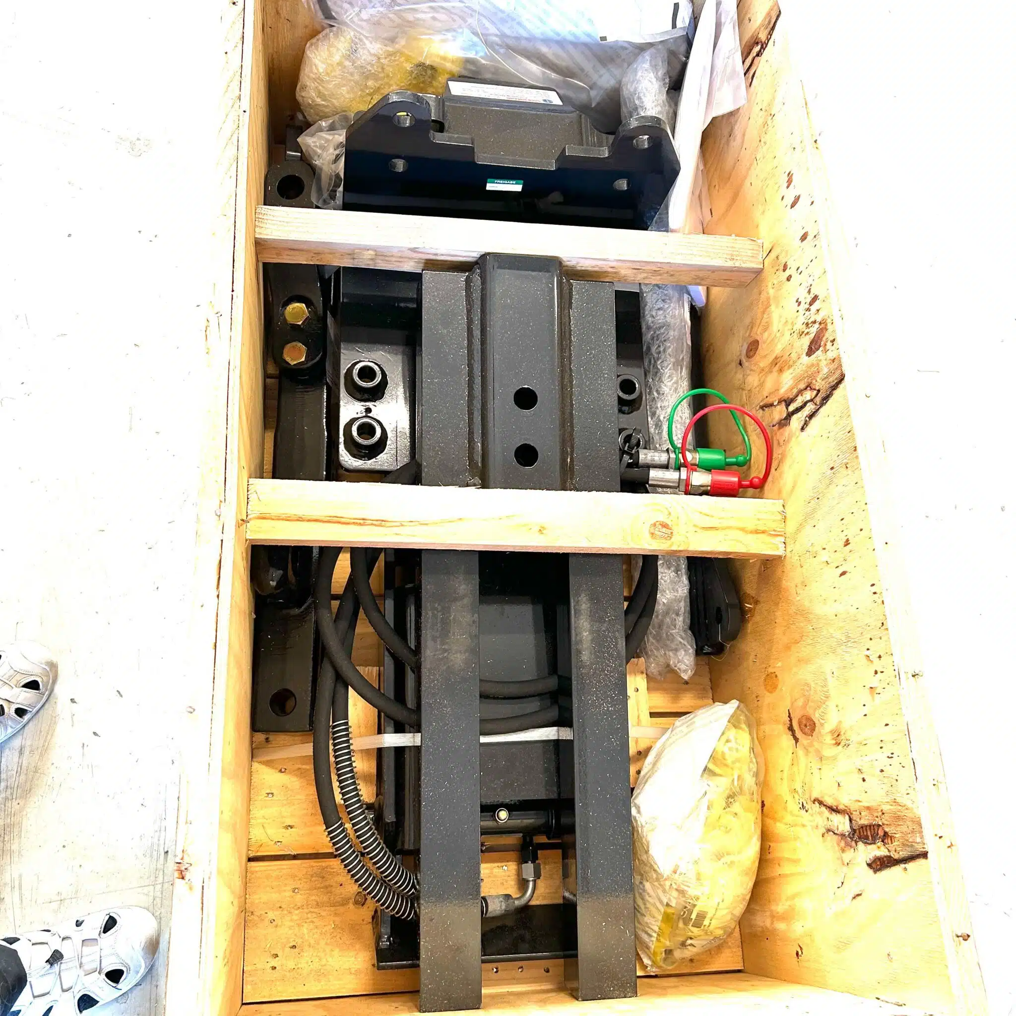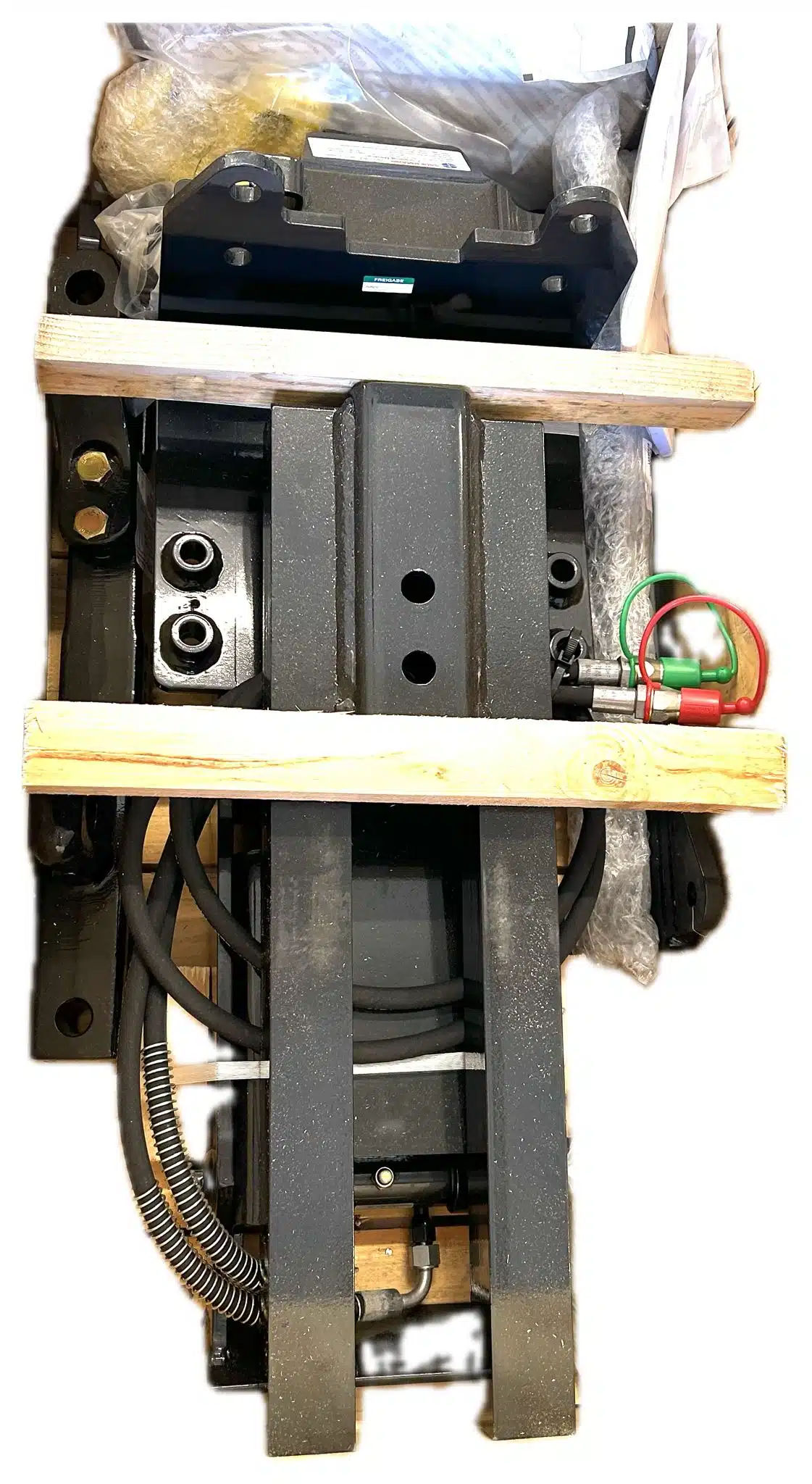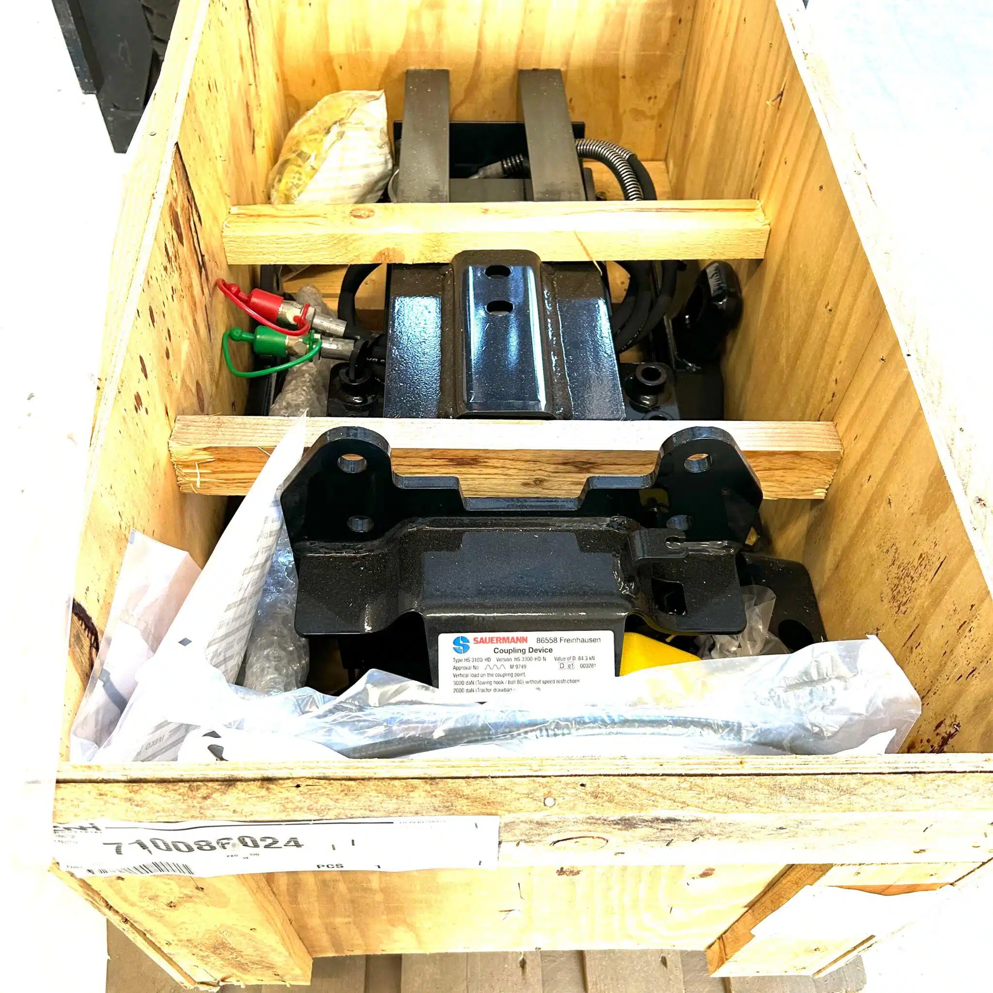 Hitch Kit #710086024 allows you to hitch a trailer or an implement from the comfort of your cab with your machine’s hydraulic lift system.